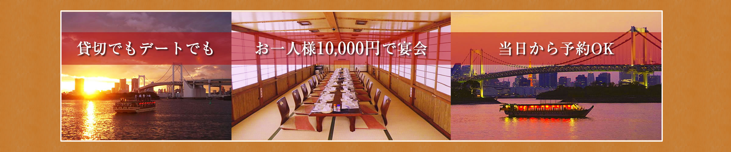 ご希望の日時・人数・場所を連絡いただければ、当日からでも屋形船が手配可能です。屋形船の総保有120隻、東京・横浜合わせて1日10,000人ご案内出来る国内最大の予約センターです。ご希望にそった屋形船を無料でご案内。